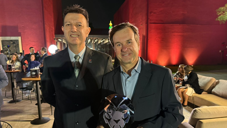 Roberto Braz Thá, CEO da Thá Engenharia, recebeu o prêmio ao lado do diretor da empresa, Gilberto Kaminski