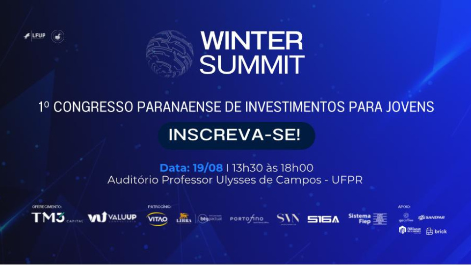 O evento acontece no próximo dia 19 de agosto, das 13h30 às 18h, no auditório do Prédio de Sociais Aplicadas da UFPR, e deverá receber um público de 400 pessoas. Além dos painéis, a Winter Summit também contará com stands de networking de várias marcas. “O mundo financeiro está sempre evoluindo. É importante se atualizar constantemente sobre novas estratégias de investimento, produtos financeiros e tendências do mercado”, finaliza Balotin.