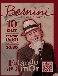 Com composições inéditas que conjugam o amar de todas as formas, o cantor e compositor Bernini estará no palco intimista do Teatro Paiol, nesta sexta dia 10 de outubro. Ortodontista com consultório em Curitiba, mestre em biologia e medicina do sono, Rosalvo Amaral “Bernini” Junior retoma a carreira musical após 15 anos do lançamento do álbum