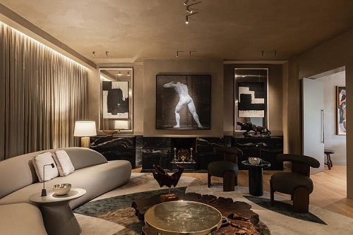 Já no Living com Lareira, de Ivan Wodzinsky, é o clássico que marca presença. No espaço está uma foto que traz o olhar da fotógrafa de uma escultura de 3 metros em Firenze, além de outras obras que trazem detalhes de um hotel na Europa.