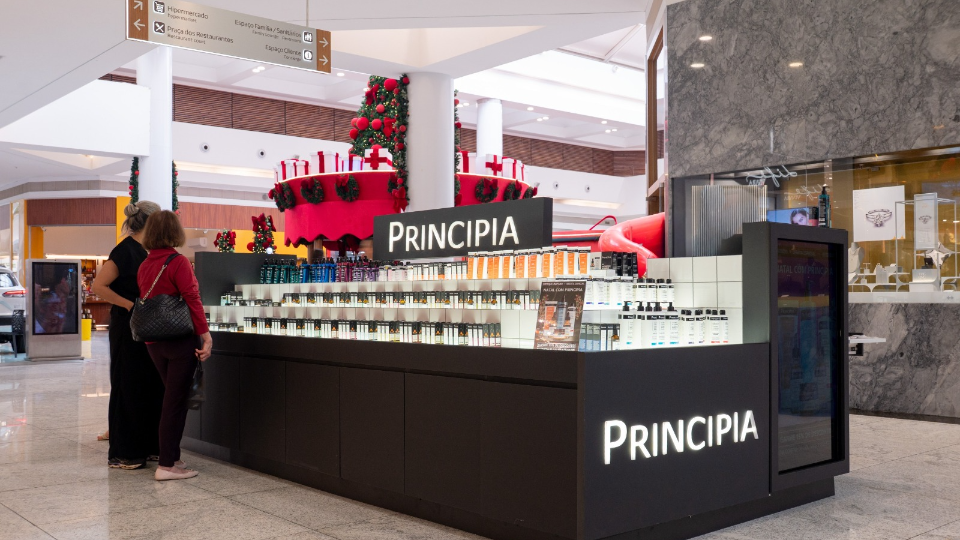 A mais recente novidade é a abertura do quiosque da Principia, marca de dermocosméticos brasileira. O quiosque, localizado em frente à Carmen Steffens, tem a linha completa da marca com produtos para higienização, hidratação e tratamento da pele.