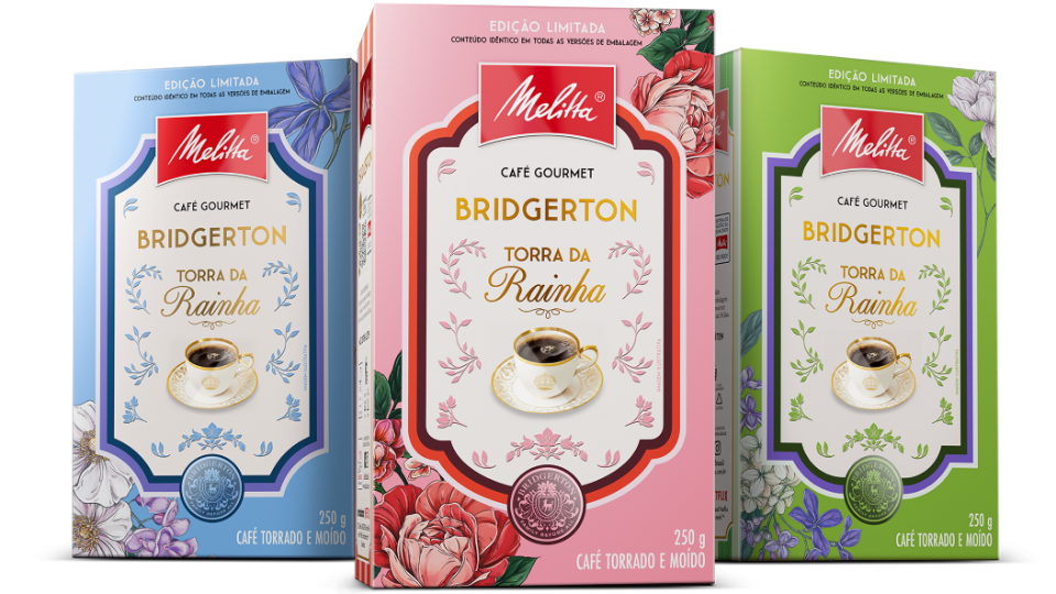 Melitta Torra da Rainha é o novo café gourmet da Melitta, com edição limitada criada em colaboração com a série Bridgerton, da Shondaland e Netflix. As embalagens são coloridas e colecionáveis. De acordo com a emprensa, o novo café “tem notas de caramelo e nozes com uma acidez delicadamente cítrica, o café oferece uma experiência sensorial memorável”.