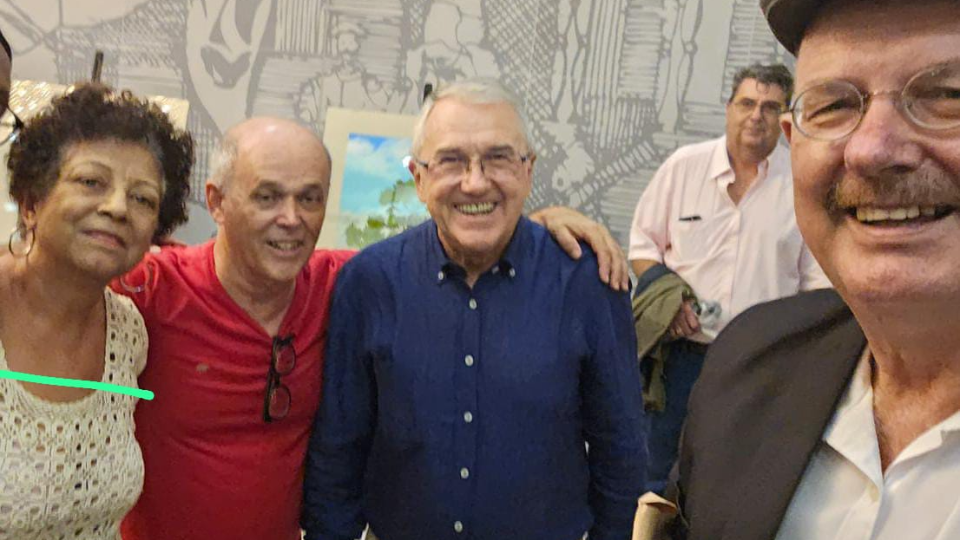 Laurentino Gomes com seus colegas de jornalismo da UFPR, Fernanda Castro (fotografa literária), Jorge Bernardi (presidente do Sindicato de Escritores) e Teo Lima (vice-presidente) no evento promovido pela Academia Paranaense de Letras.