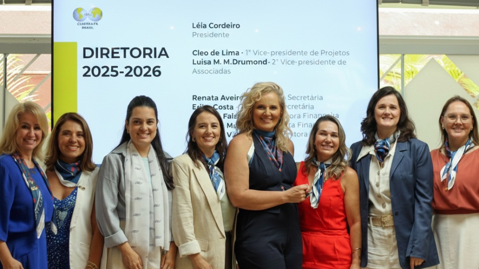 Léia Cordeiro, presidente da BPW Curitiba, Cléo Lima, 1ª Vice-Presidente De Projetos, Luisa Drumont, 2ª Vice-Presidente de Associadas, Renata Aveiro, Primeira Diretora Secretária, Erika Costa, Segunda Diretoria Secretária, Luciana Falavinha, Primeira Diretora Financeira, Cassiana Manfio, Segunda Diretoria Financeira e Cecilia Franco, Diretora Jurídica