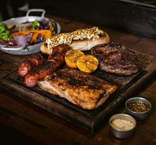 Outras opções: hambúrgueres de costela na parrilha (180 g), sanduíches de cupim e costela no pão baguete e o tradicional choripán uruguaio; provoleta tostada com tomate confit, linguiça parrillera com queijo coalho, papas bravas com molho de queijo e cupim, bruschetta de costela e queijinho coalho com geleia de pimenta. Se quiser também tem arroz e feijão.