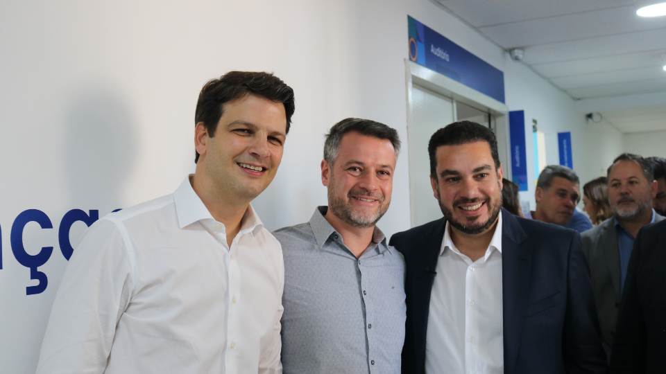 Prefeito de Curitiba, Eduardo Pimentel, o CEO da Selecty, Márcio Monson, CEO da Selecty e o vice-prefeito da capital, Paulo Martins