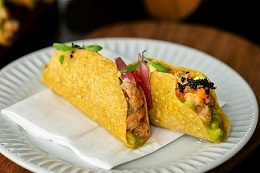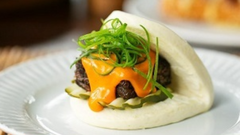 Os chefs Vitor Verona e Felipe Machoski, do Officina Resto Bar e Neko Asian Bar, oferecem Bao de Bulgogi com Cheddar Gochujang no pão de vapor recheado com costela prensada, e um Corn Dog com kewpie e molho tonkatsu.