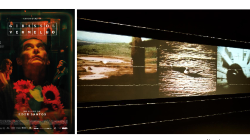(Esq - Cartaz do filme “Girassol Vermelho”, de Eder Santos - Cred Divulgação / Dir Videoinstalação Janaúba (Foto - Isabel Moreira & Leandro Aragão)