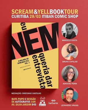 Itiban Comic Books, em Curitiba, recebe neste sábado, 28, o lançamento do livro Eu nem queria dar entrevista: o melhor do Scream & Yell, vol. 1, uma publicação da editora curitibana Barbante, organizado pelo editor e fundador do site Scream Yell, Marcelo Costa.