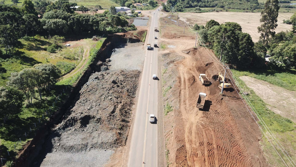 OBRA – A duplicação em concreto da PRC-466 entre Turvo e Palmeirinha (distrito de Guarapuava) tem 27,02 quilômetros de extensão, um investimento de R$ 293,75 milhões. Ela contempla, ainda, o whitetopping da pista existente, dois novos viadutos e uma nova ponte sobre o Rio Turvo.