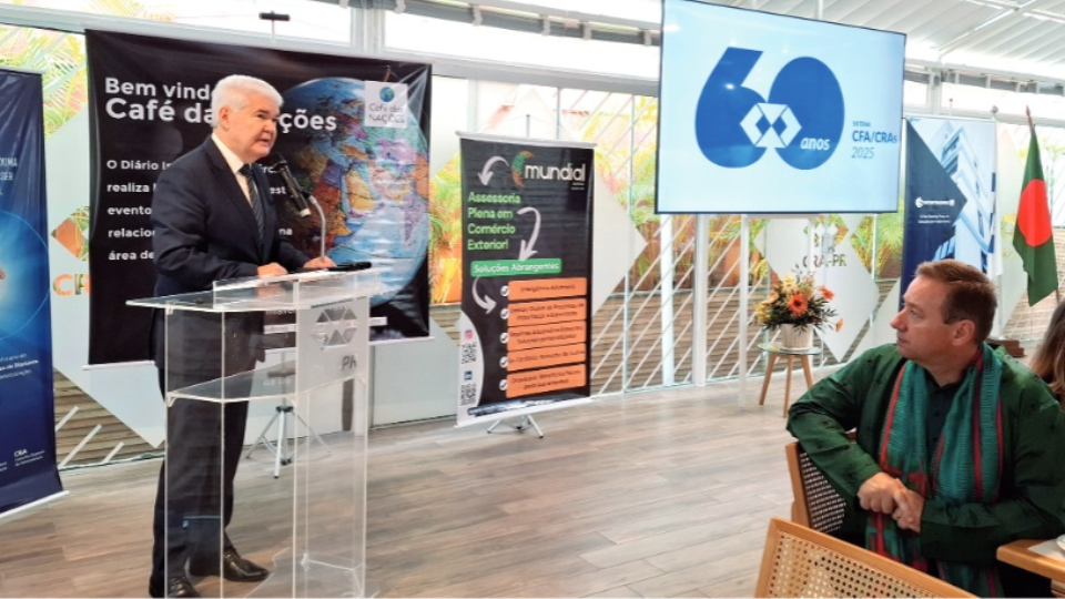 Nesta edição do Café das Nações, Bangladesh foi homenageada e seu representante foi o presidente da Sociedade do Corpo Consular do Paraná (SCCPR), o cônsul honorário Marcelo Grendel Guimarães. Em evidência estiveram Luxemburgo e Finlândia, representadas respectivamente pelo presidente da Câmara do Comércio Brasil Luxemburgo, Marcos Cesar Migdalski, e pelo presidente de Inovação e Aprendizagem da Câmara de Comércio Brasil Finlândia, Maxwill Araújo Braga, que compartilharam um panorama das oportunidades de negócios em seus países.