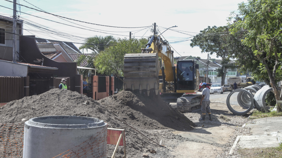 A obra em andamento prevê a implantação de aproximadamente 550 metros de nova rede de drenagem, com diâmetros que variam entre 80 centímetros e 1,20 metro. As estruturas vão ampliar significativamente a capacidade de escoamento das águas pluviais na região.
