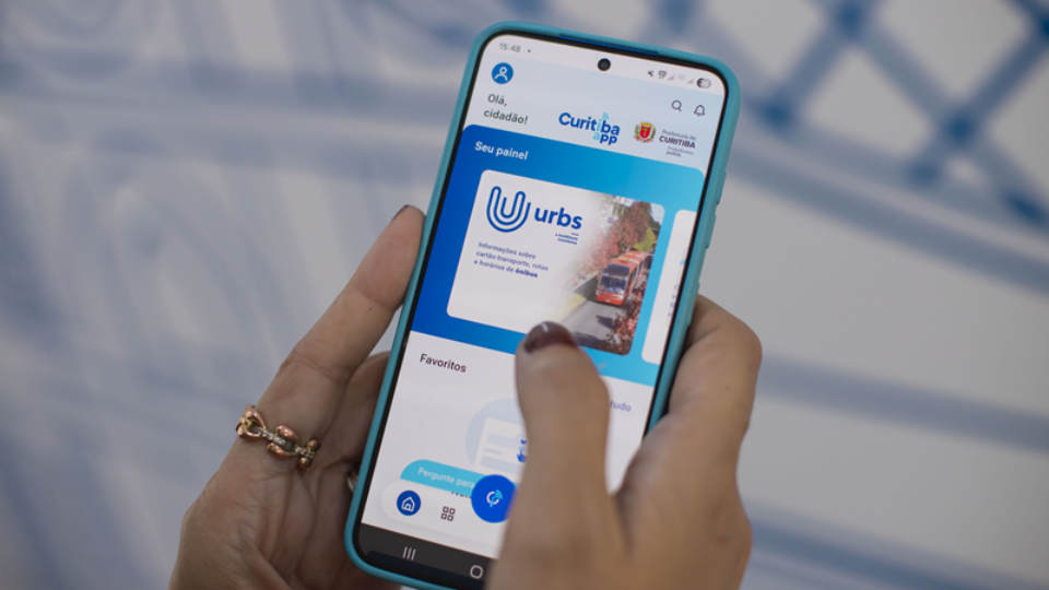 Foto: Isabella Mayer/SECOMO novo Curitiba App, plataforma que unifica serviços municipais e agora incorpora inteligência artificial para facilitar o acesso da população, traz novidades para os passageiros do transporte coletivo e rodoviário.