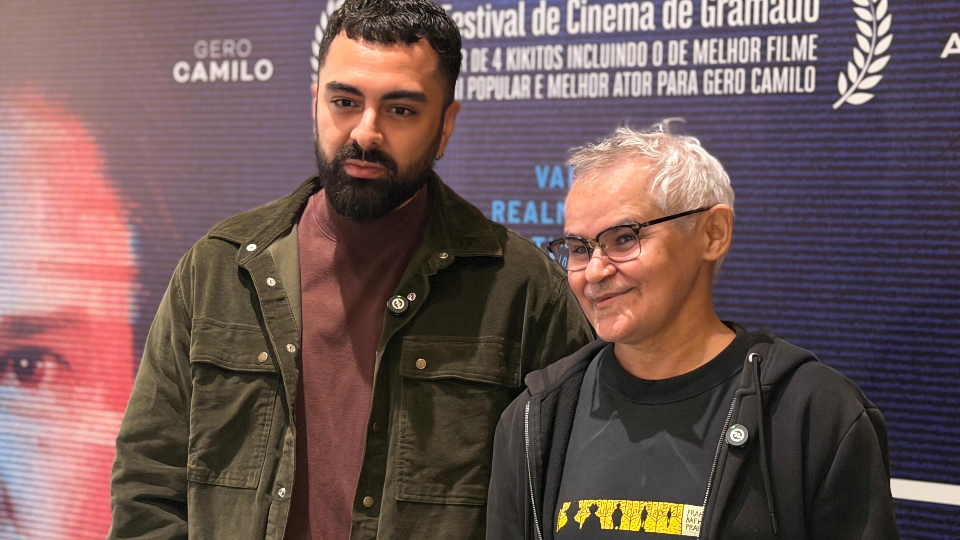 O diretor Douglas Soares e o ator Gero Camilo em Curitiba para a pré-estreia de 'Papagaios' Cred Bianca Merolli