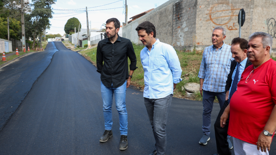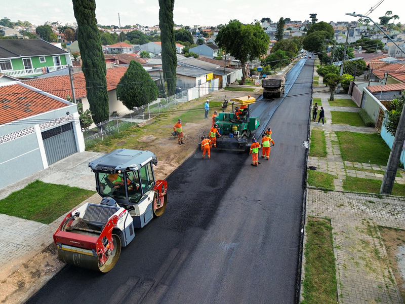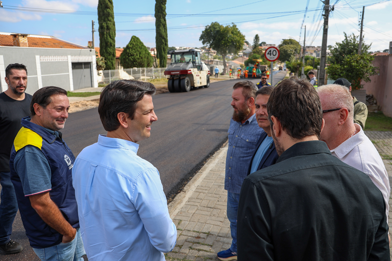 A primeira parada foi na Rua Humberto Ciccarino, no bairro Xaxim, que recebe obras em um trecho de 1.110 metros, entre as ruas Coronel Luiz José dos Santos e Evaristo da Veiga. Iniciada em 1º de abril, a intervenção já está na fase final, com aplicação da segunda camada de asfalto e previsão de conclusão até o fim da próxima semana.